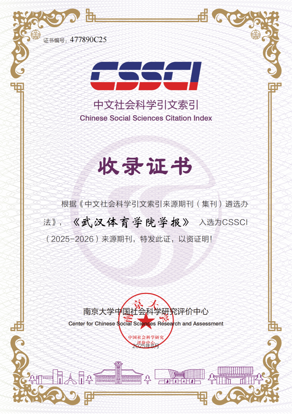 近日,南京大学中国社会科学研究中心发布了2025-2026年度中文社会科学引文索引(CSSCI)收录名单,《武汉体育学院学报》继续入选CSSCI(2025-2026)来源期刊。这是《武汉体育学院学报》自1998年入选首版CSSCI来源期刊以来,连续15次入选CSSCI来源期刊。